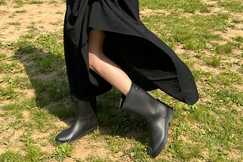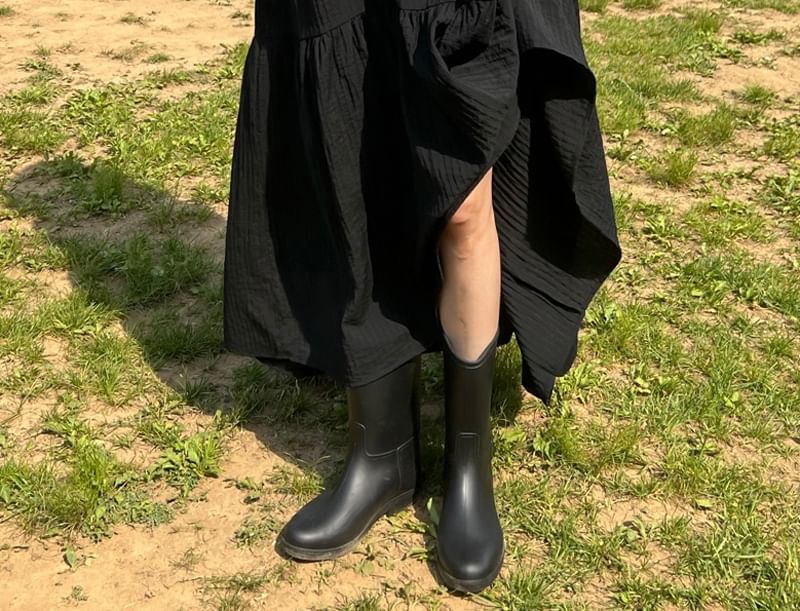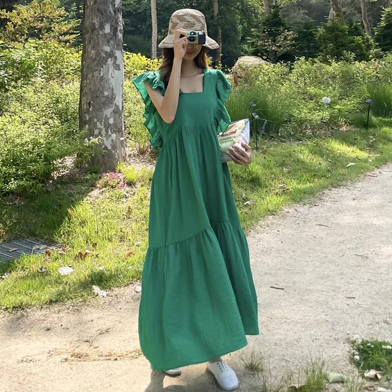 Cap-Sleeve Square Neck Plain Midi A-Line Dress