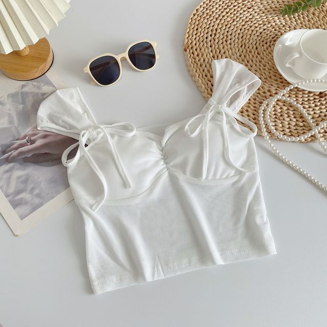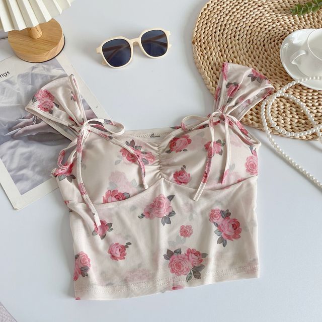 Cap-Sleeve V-Neck Floral Print Bustier Crop Top