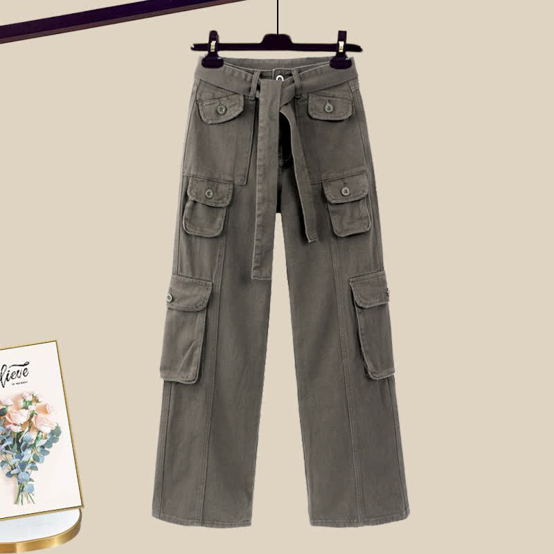 Elevate your style with this elegant casual set. The top features a trendy letter print and adjustable drawstring for a perfect fit. The pants have convenient pockets and a chic cargo design. Perfect for a day out or a casual evening.