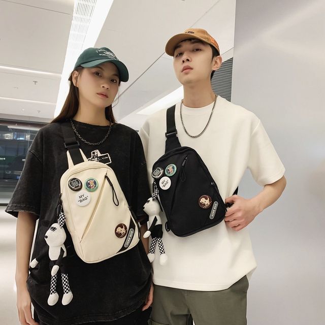 Lettering Applique Nylon Sling Bag / Badge / Bag Charm / Set