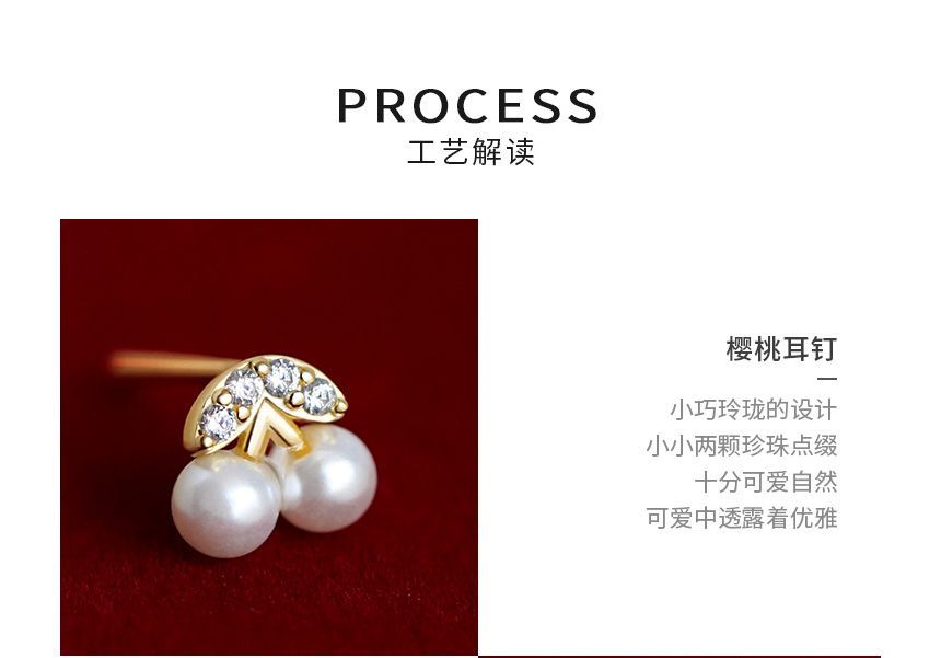 Cherry Faux Pearl Rhinestone Sterling Silver Earring