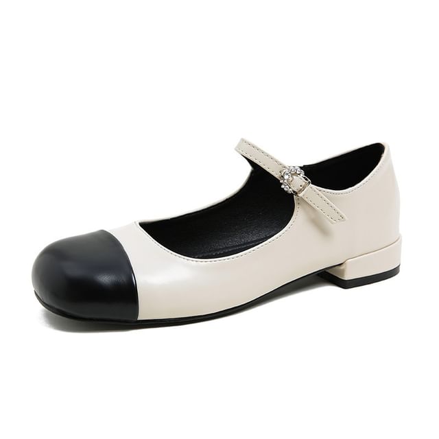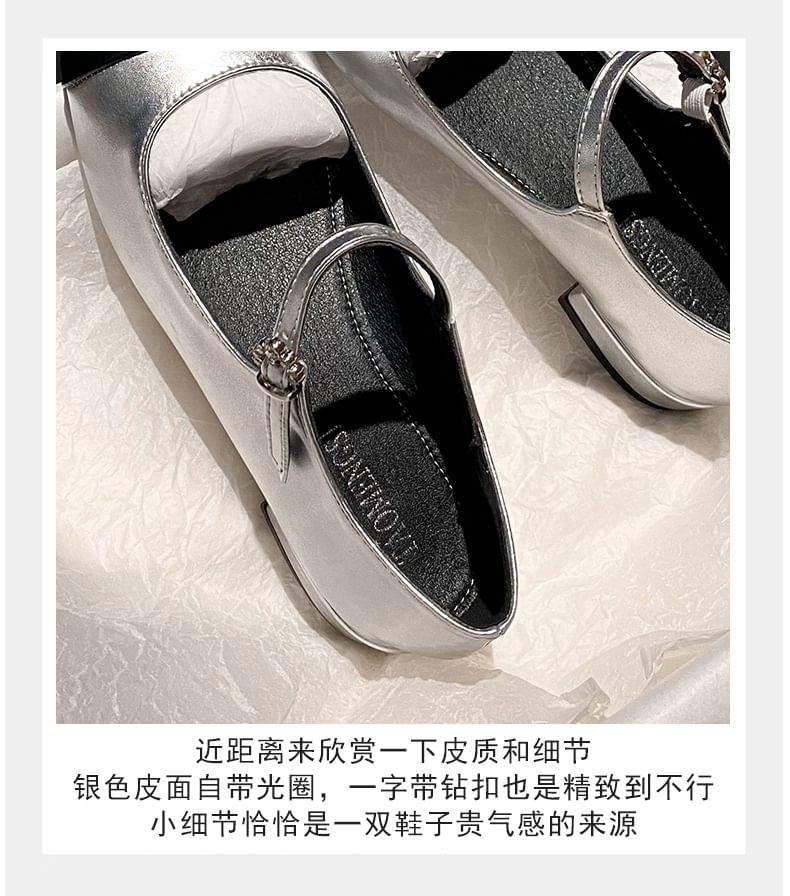 Chunky Heel Cap Toe Rhinestone Buckled Faux Leather Mary Jane Shoes