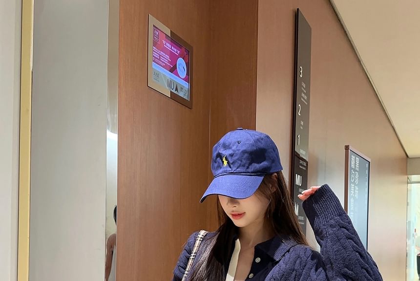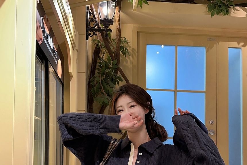 Collared Lettering Embroidered Plain Cable Knit Sweater / Mid Rise Knit Shorts