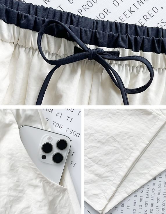 Contrast Panel Drawstring High Rise Wide Leg Sweatpants