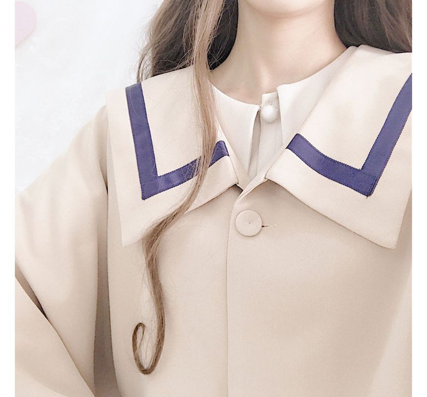 Contrast Trim Cape / Long-Sleeve Collared Plain Midi A-Line Dress