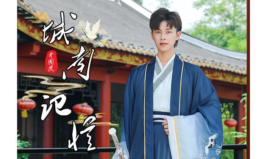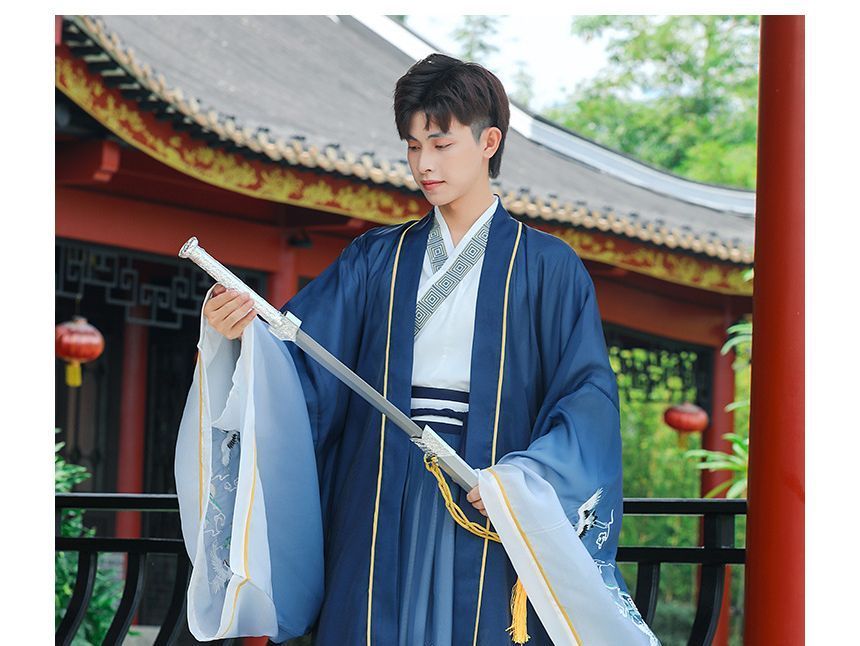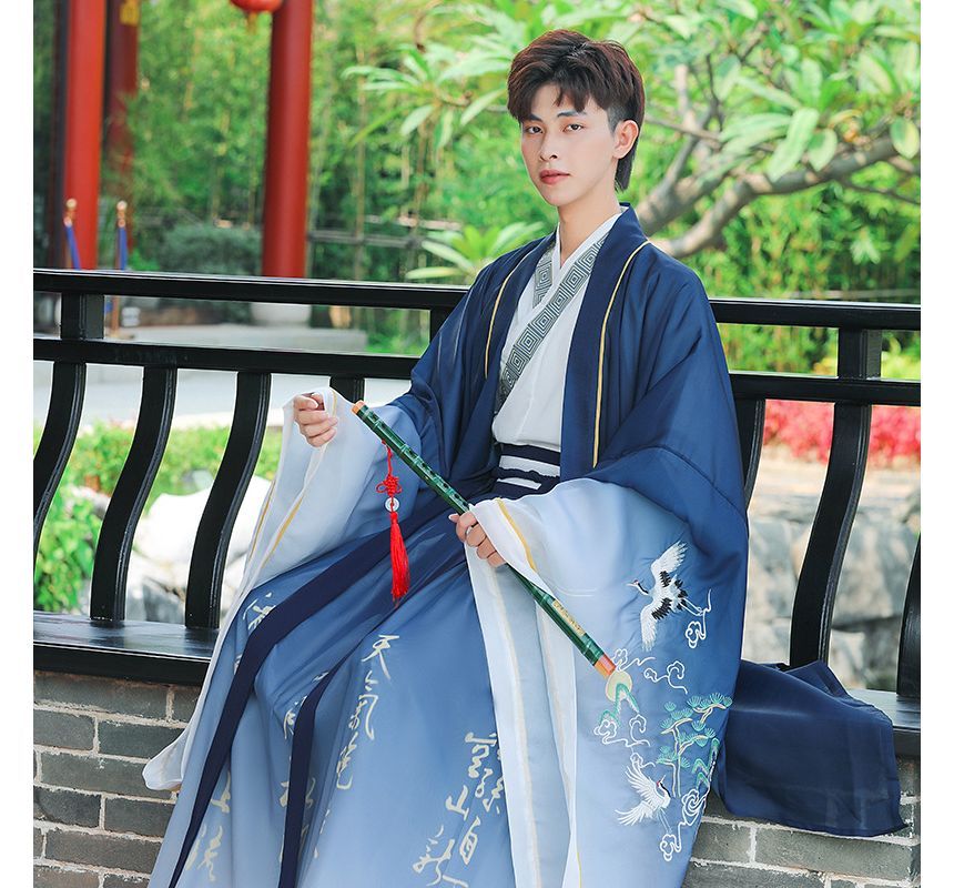 Crane Embroidered Hanfu Jacket / Patterned Blouse / High Waist Chinese Character Print Maxi A