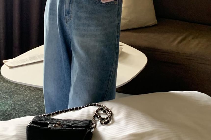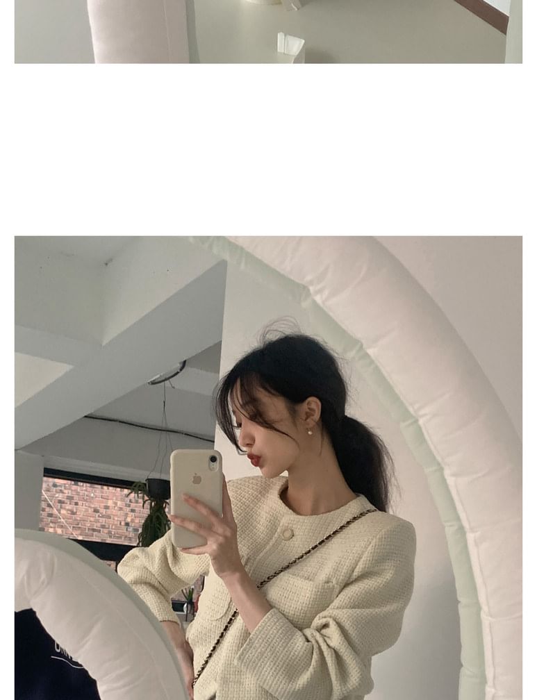 Crew Neck Button-Up Plain Tweed Crop Jacket