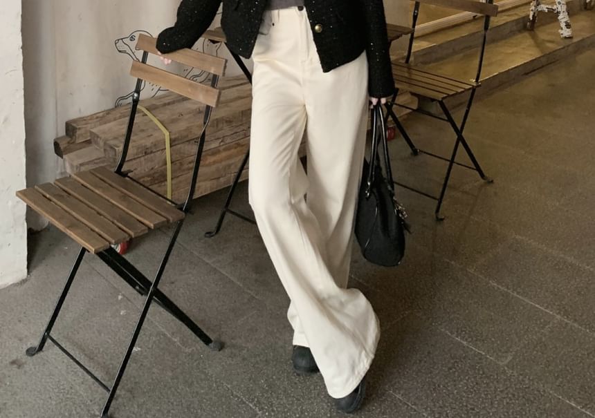 Crewneck Tweed Button-Up Jacket / Long-Sleeve Plain Top
