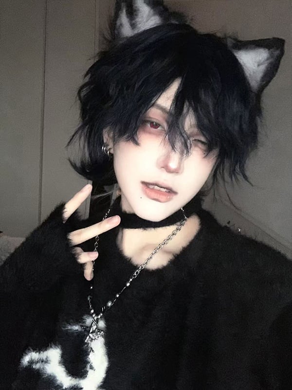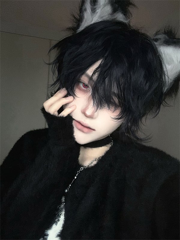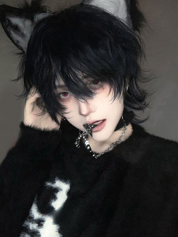 Dark Blue Short Wavy ?Boy Style Wig