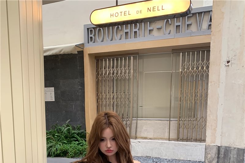 Drawstring Pullover Contrast Waist Off-Shoulder / Trim Plain