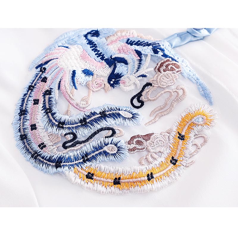 This elegant set features a beautiful floral tassel shirt and a stunning bird print skirt. Perfect for a sophisticated look that will make a statement.