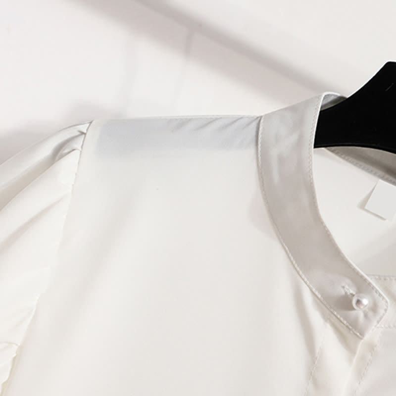 Elegant Pure Color Puff Sleeve T-Shirt Lace Up Pleated Skirt