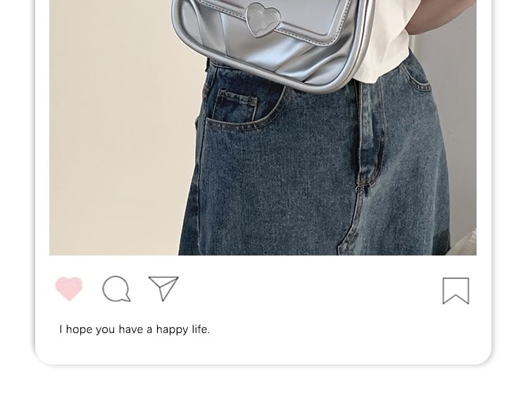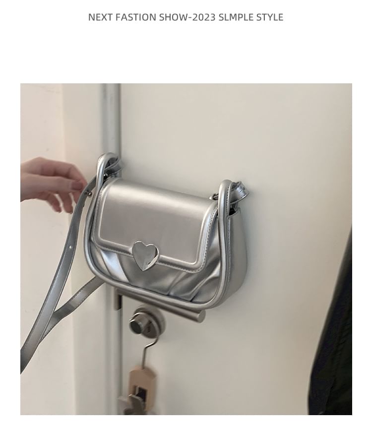 Faux Leather Heart Buckled Flap Crossbody Bag