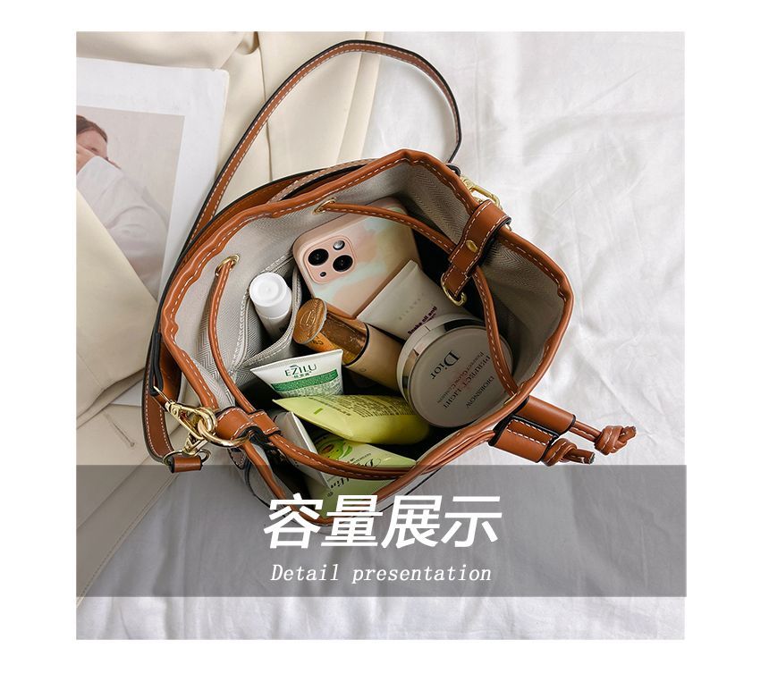 Faux Leather Panel Drawstring Bucket Bag