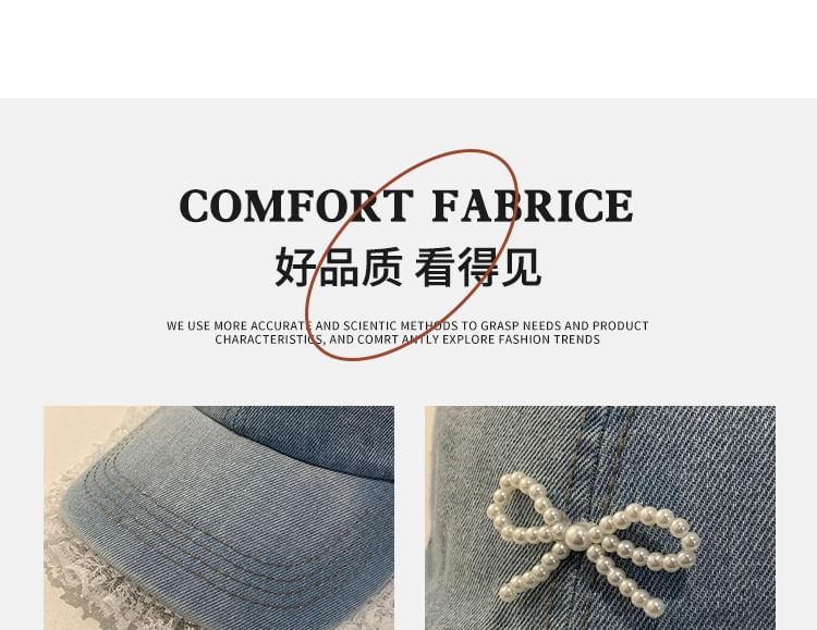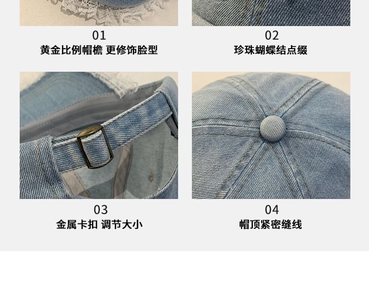 Faux Pearl Beaded Bow Ruffle Denim Baseball Cap