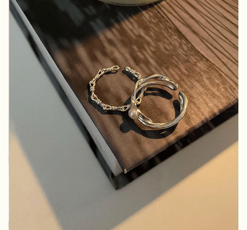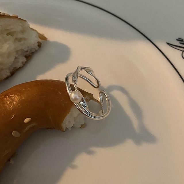 Faux Pearl Layered / Chain Sterling Silver Open Ring