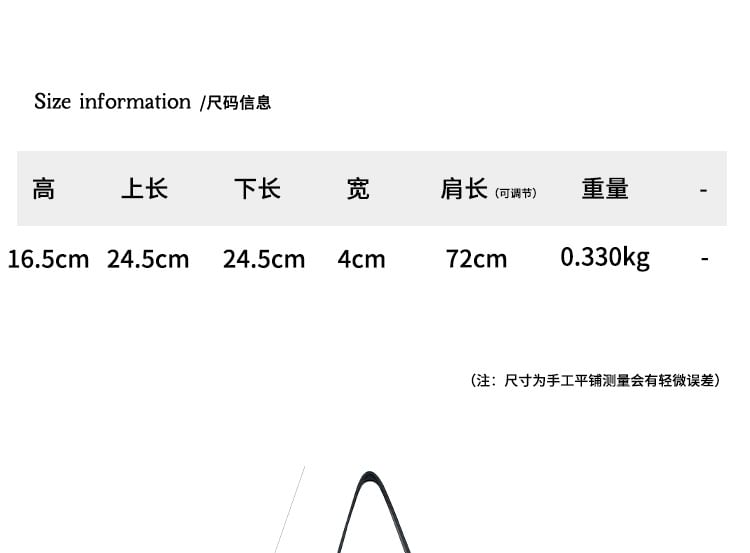 | Height | Upper Length | Bottom Length | Width | Strap Length |