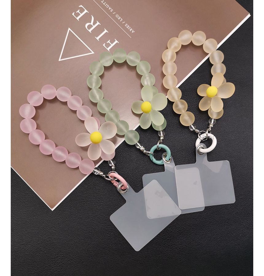 Floral Bead Phone Strap with Lanyard Pad