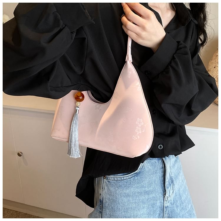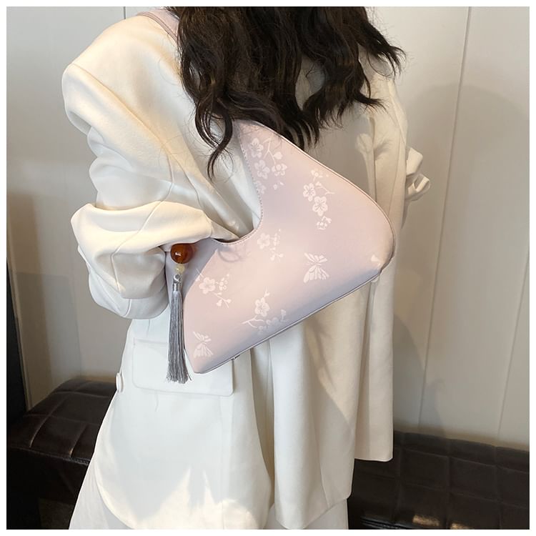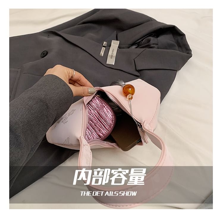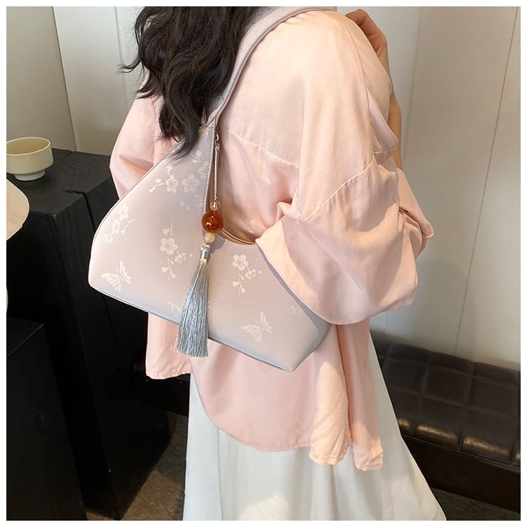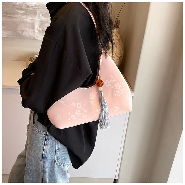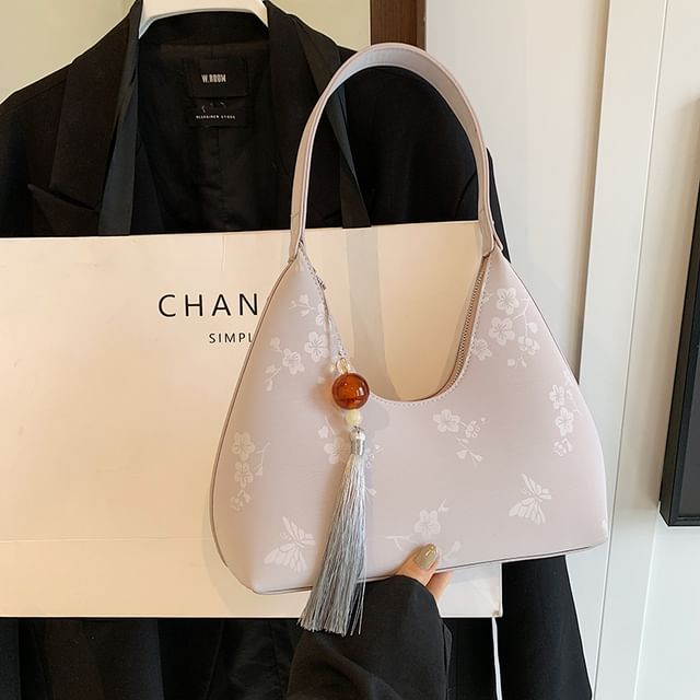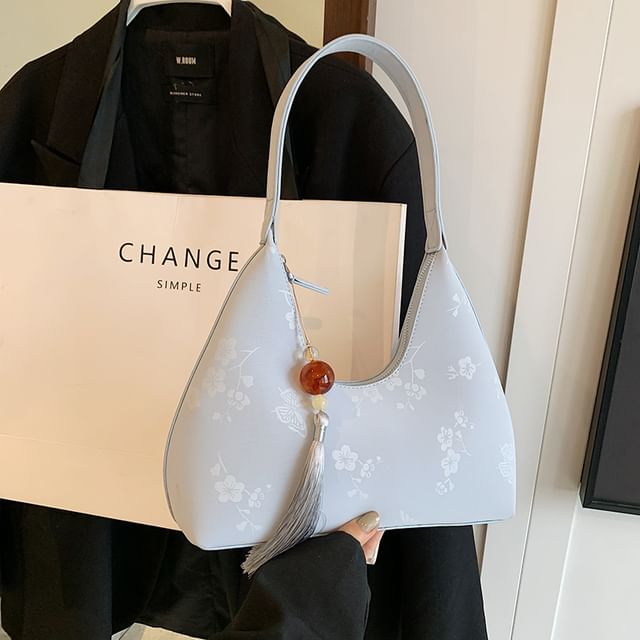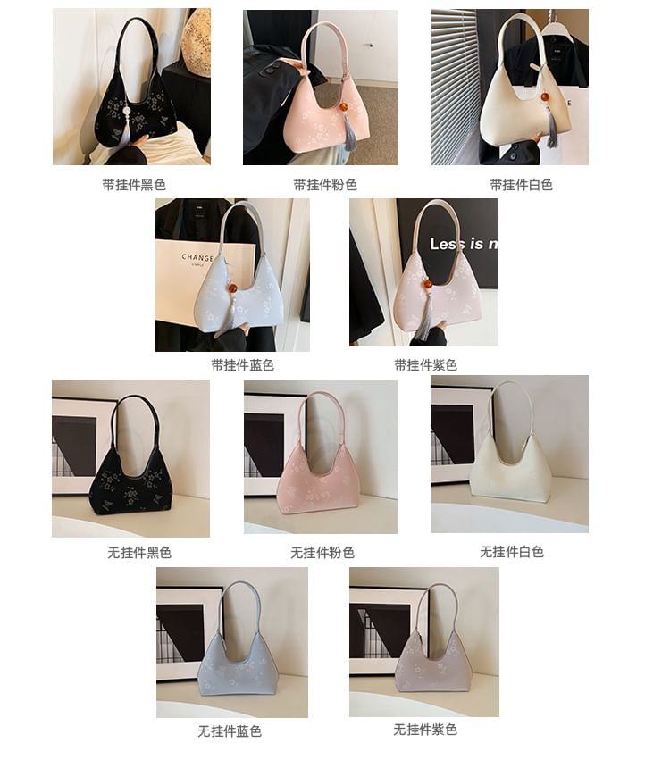 Floral Print Faux Leather Shoulder Bag / Bag Charm / Set