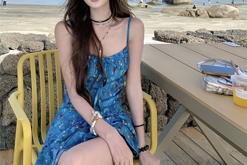 Floral Print Tie-Up Top Asymmetrical Cami