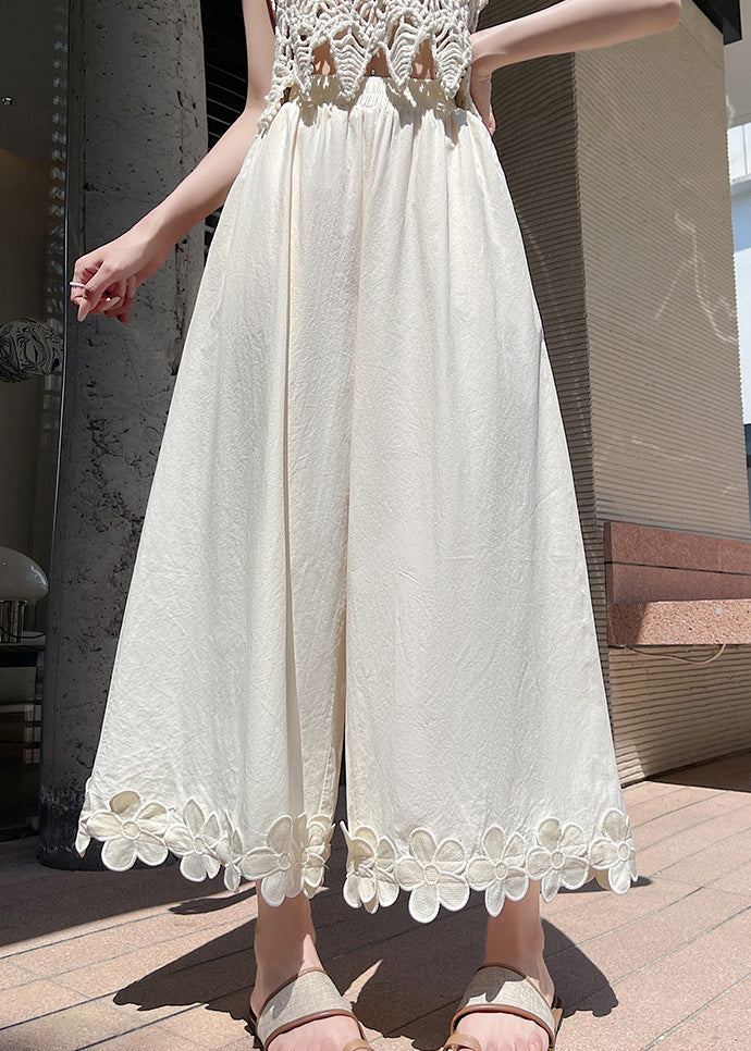 Floral Wide Leg Black Pants Cotton Original Design Patchwork