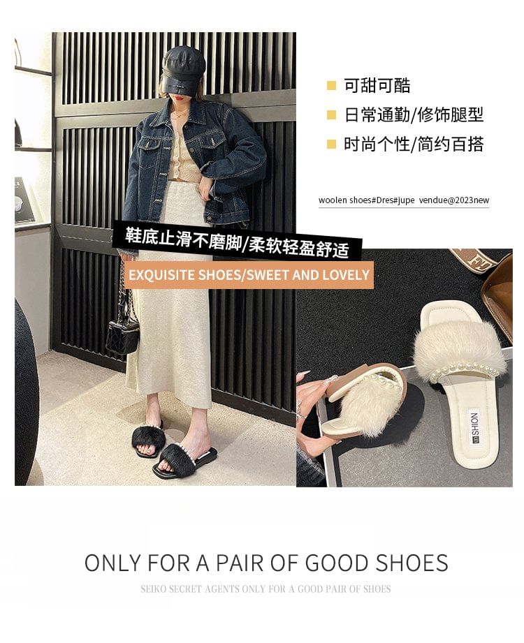 Fluffy Faux Pearl Slide Sandals