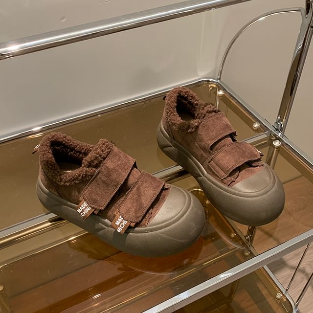 Fluffy Trim Adhesive Strap Platform Sneakers