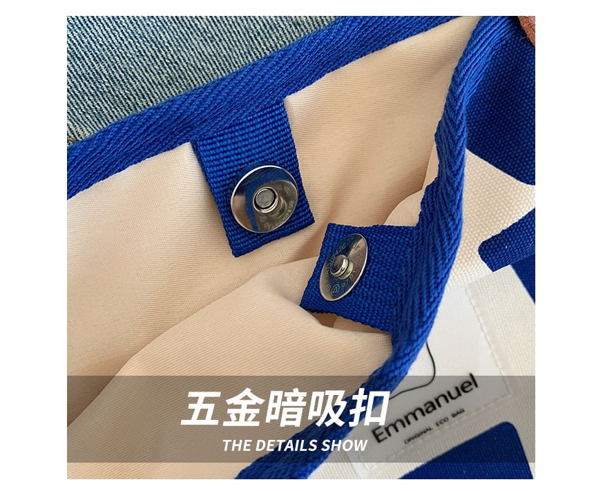 Geometric Print Applique Canvas Carryall Bag