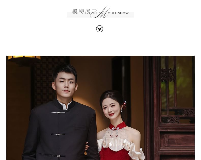 Halter Mandarin Collar Cold-Shoulder Asymmetrical A-Line Evening Dress