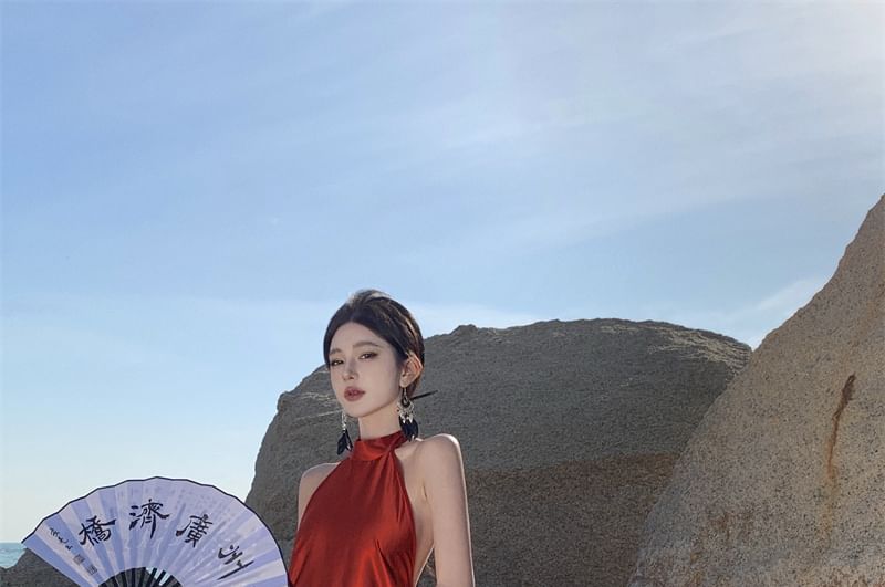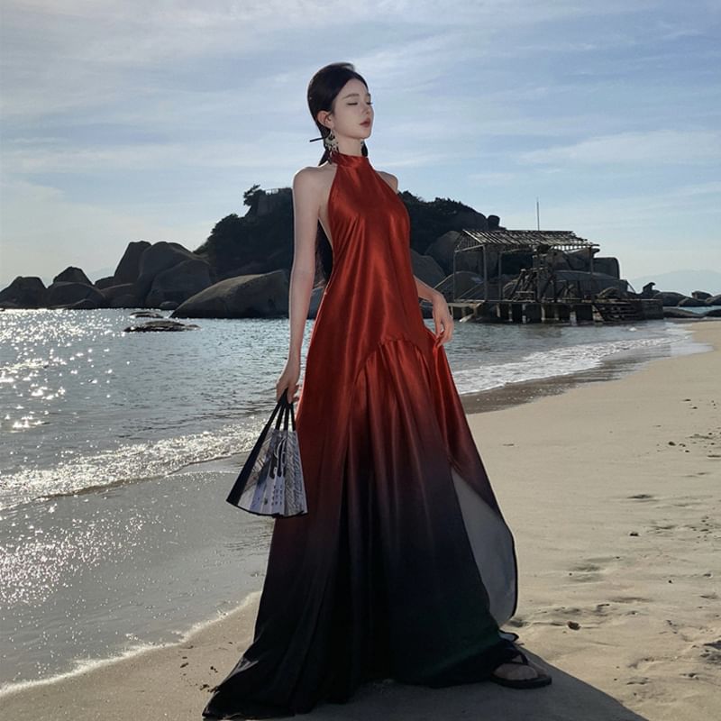 Halter-Neck Ombre Maxi Sundress
