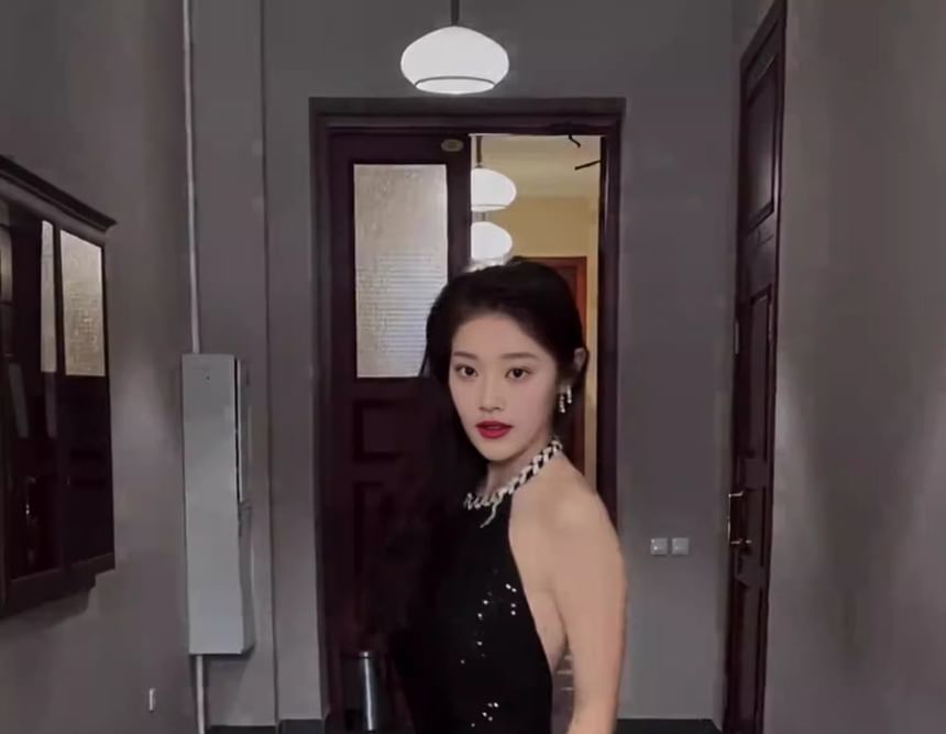 Halter Sequin Slit Open Back Maxi Sheath Evening Dress