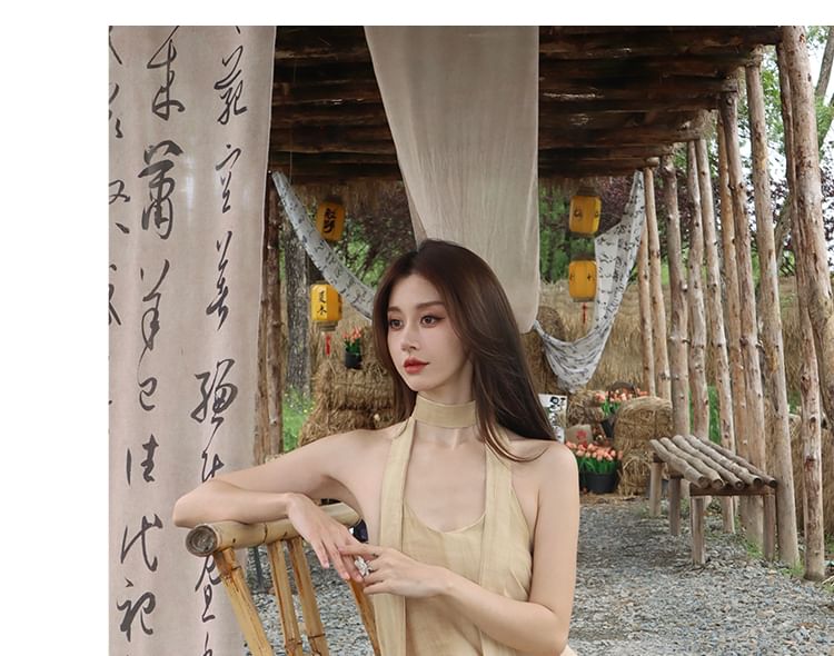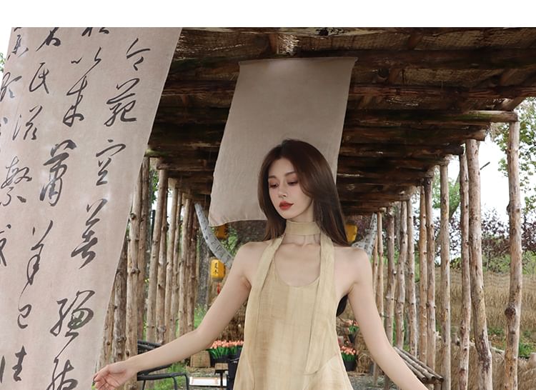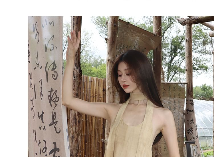 Halter Tie Dye Asymmetrical Open Back Midi A