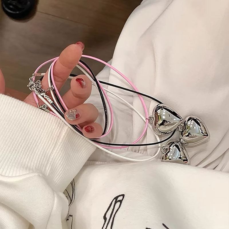 Heart Pendant Faux Leather Cord Necklace
