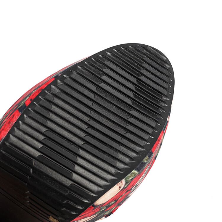 Heel Ankle Floral Stiletto Boots Lace-Up Platform