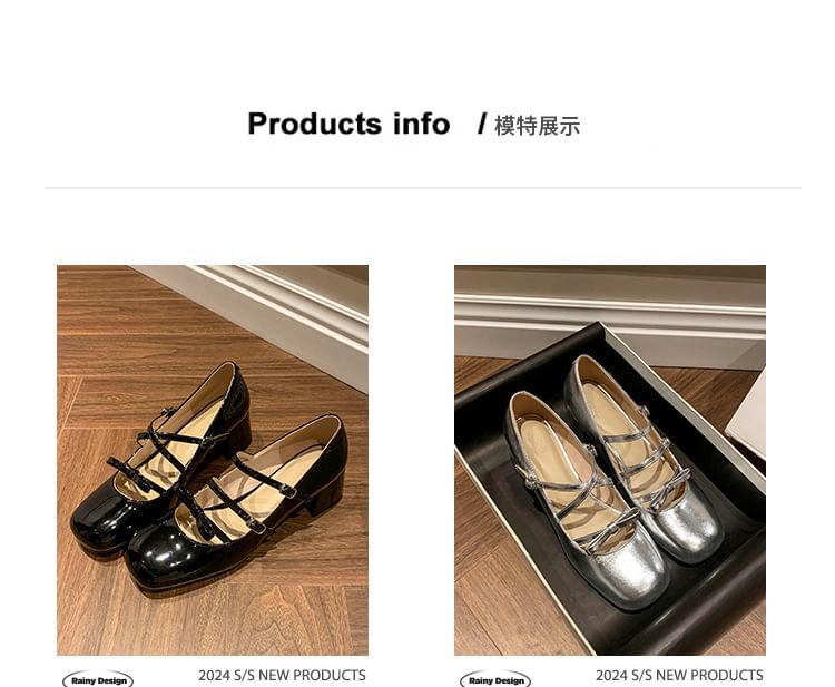 Heel Pumps Bow Jane Chunky Mary Strappy