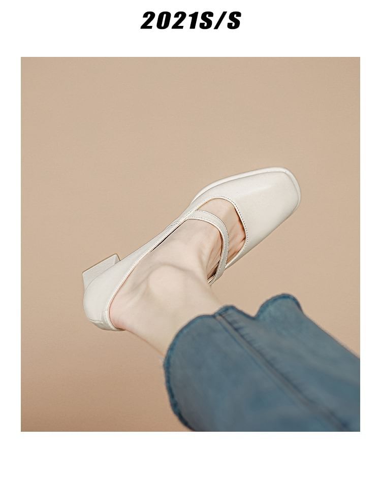 Heel Pumps Faux Pearl Chunky Jane Square Toe Mary