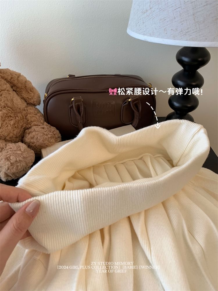 High Rise Plain Bow Accent Pleated Knit Mini A-Line Skirt
