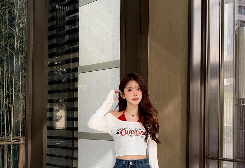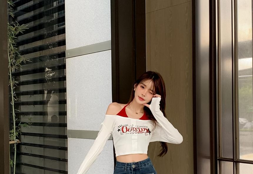 High Waist Washed Frayed Flared Jeans