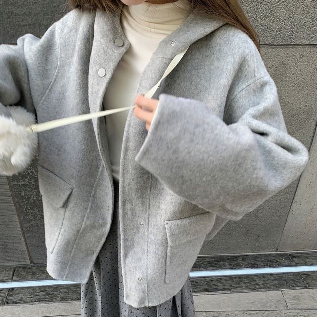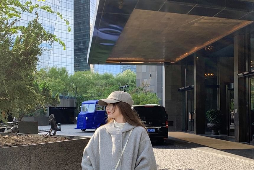 Hooded Plain Oversized Zip Jacket / Mid Rise Dotted Midi Pleated Skirt