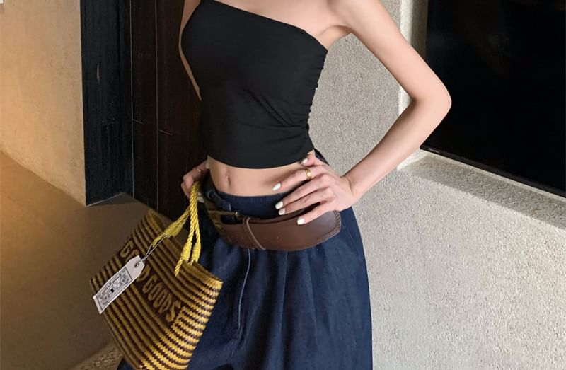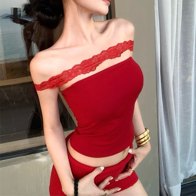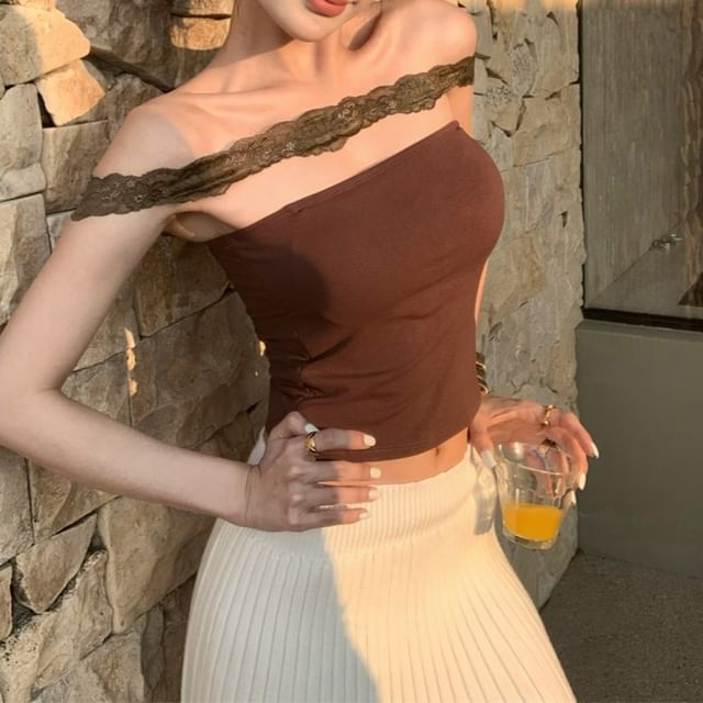 Lace Crop Padded Fit Panel Plain Top Halter Slim