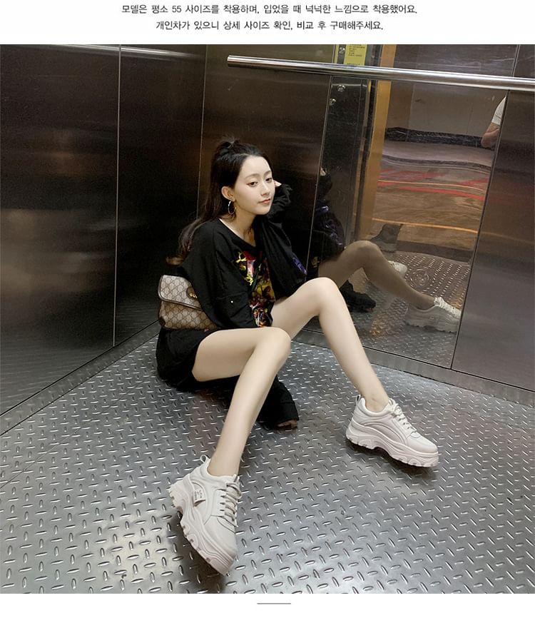 Lace-Up Plain Faux Sneakers Leather Platform