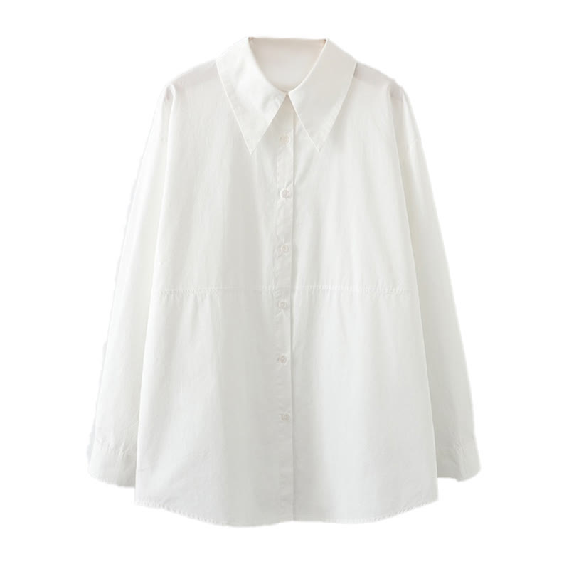 Lapel Pure Color Long Sleeve Loose Shirt Workwear