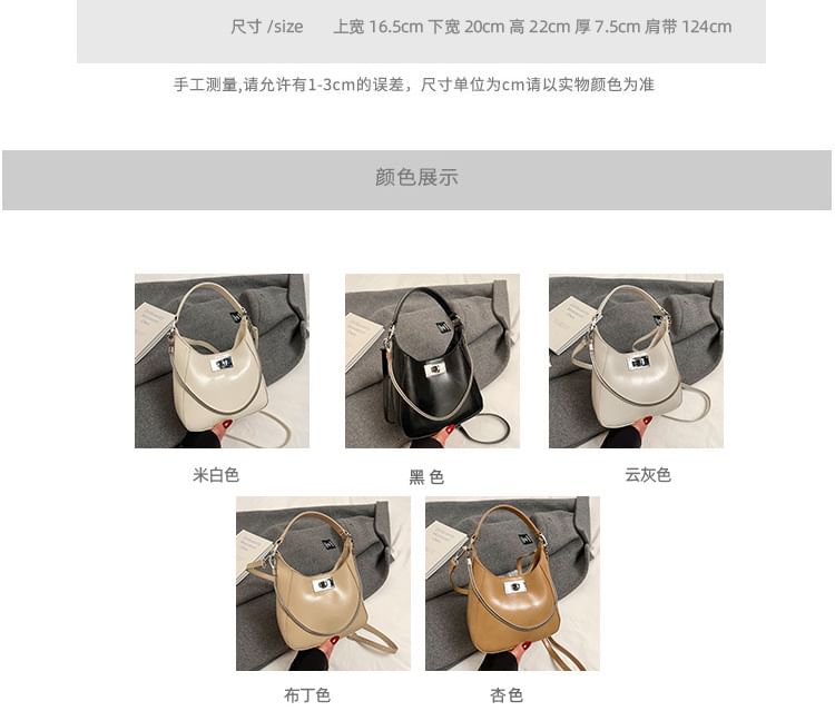 Leather Lock Crossbody Bag Top Handle Faux Twist