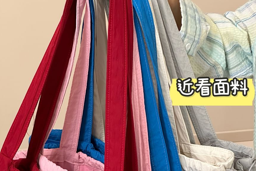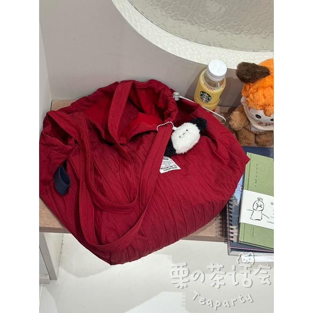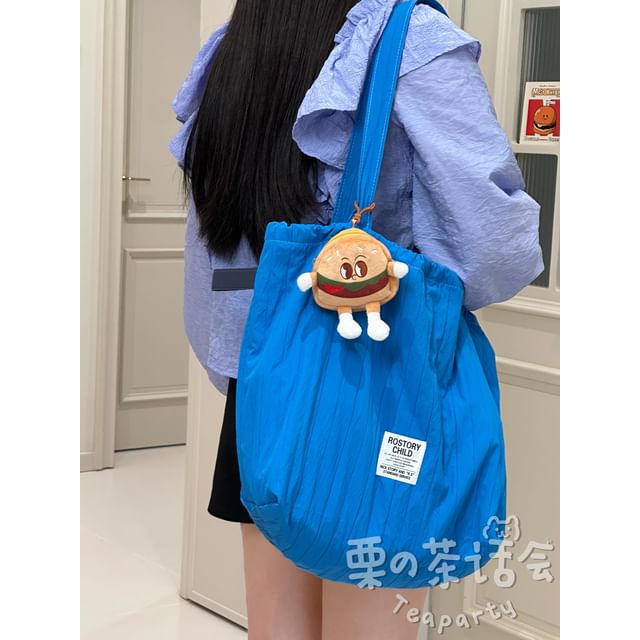 Lettering Ribbed Plain Tote Bag / Bag Charm / Set