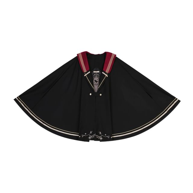 Lolita Long-Sleeve Collared Bird Embroidered Pintuck Shirt / Cape / High Waist Panel Midi A-Line Skirt / Set