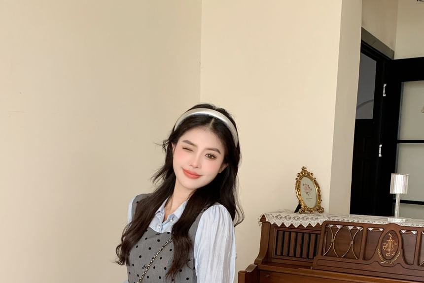 Long Sleeve Collared Dotted Mock Two Piece A-Line Dress