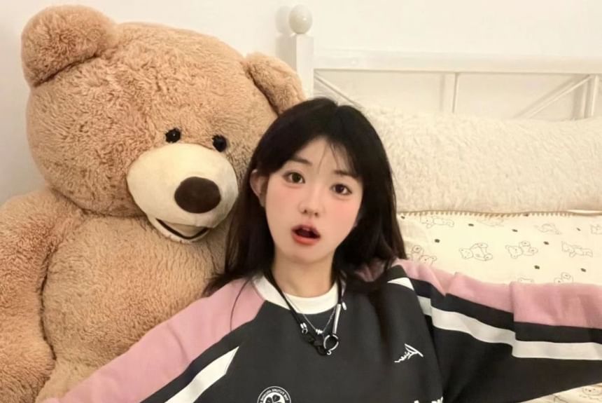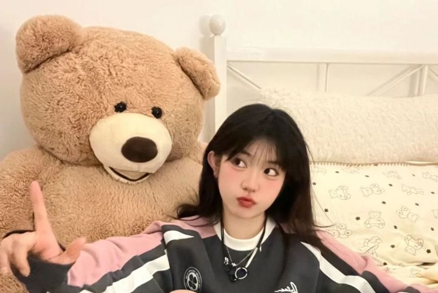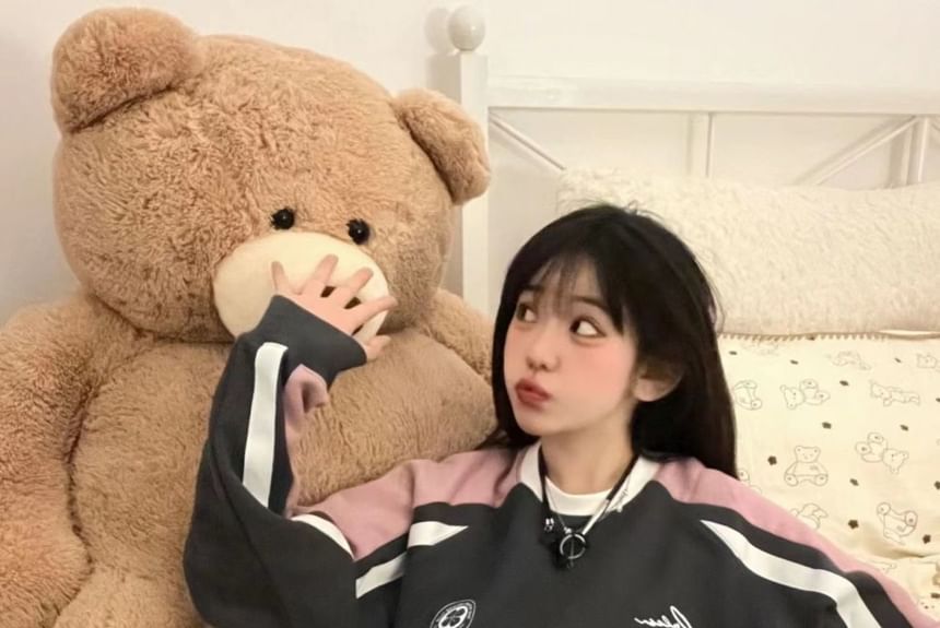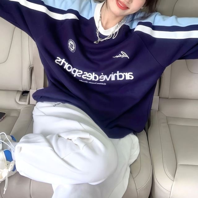 Long-Sleeve Crew Neck Lettering Raglan Sweatshirt