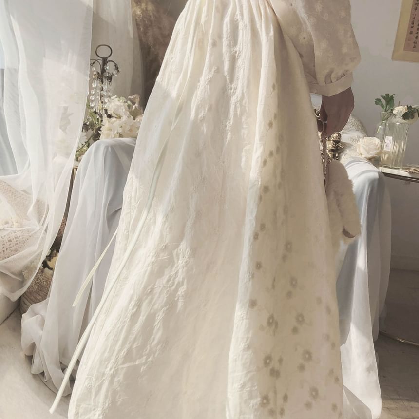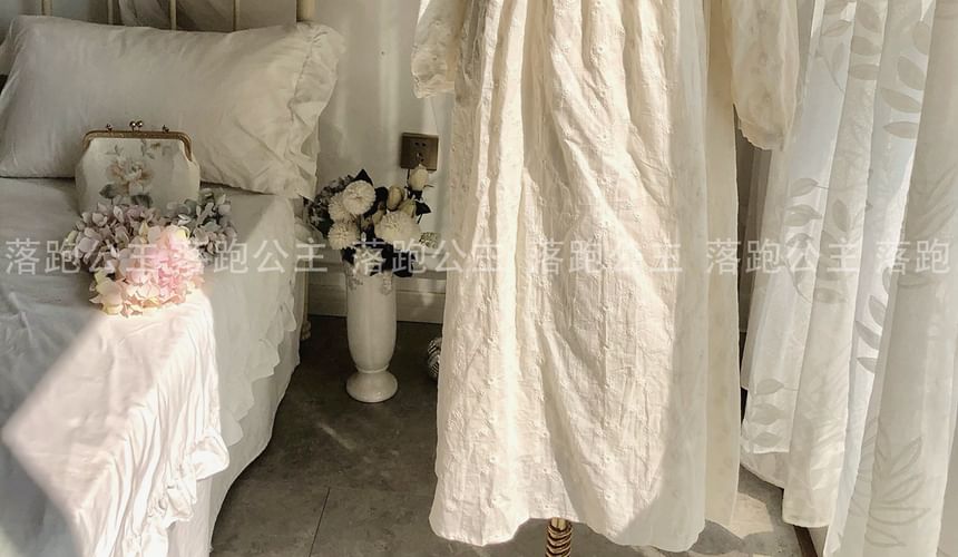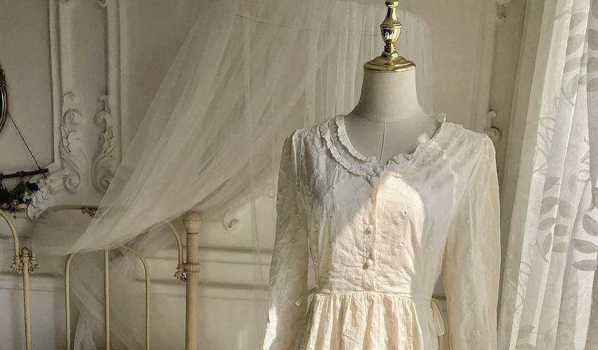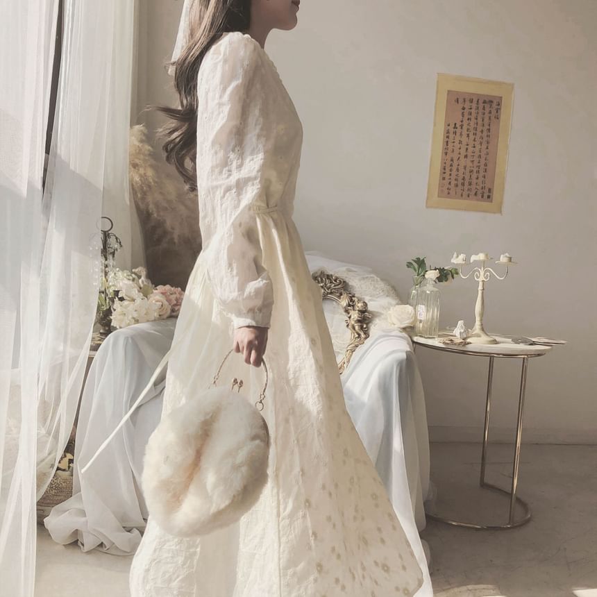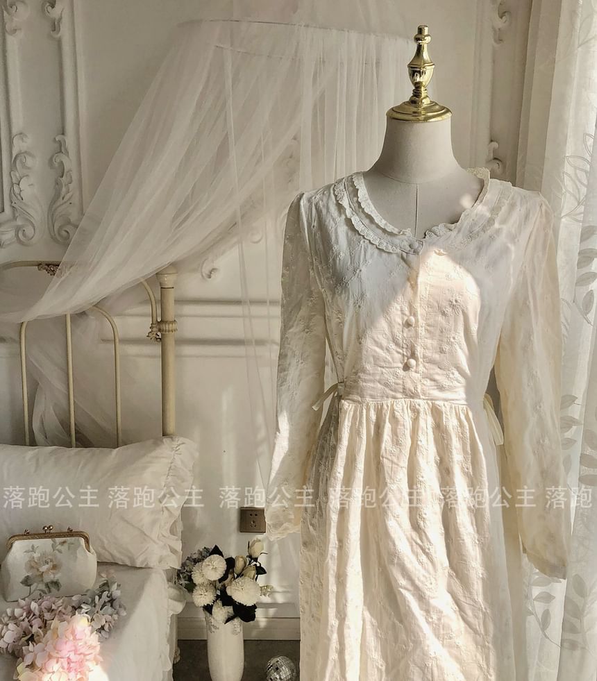 Long-Sleeve Crew Neck Plain Midi A-Line Dress