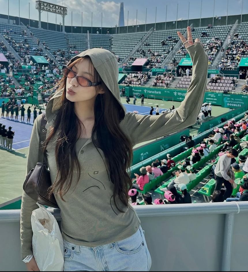 Long-Sleeve Hooded Stitching T-Shirt