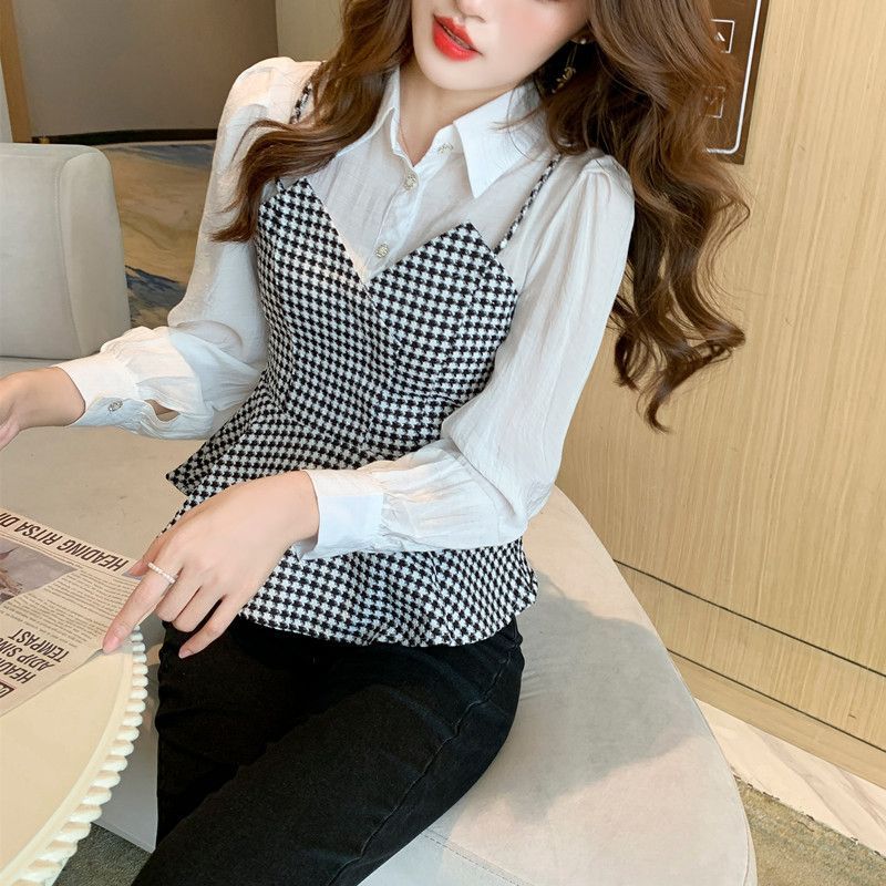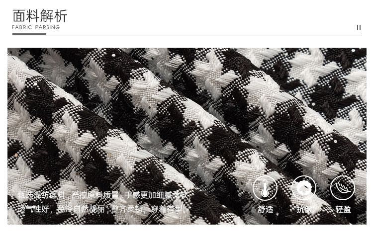 Long Sleeve Houndstooth Panel Mock Two Piece Top